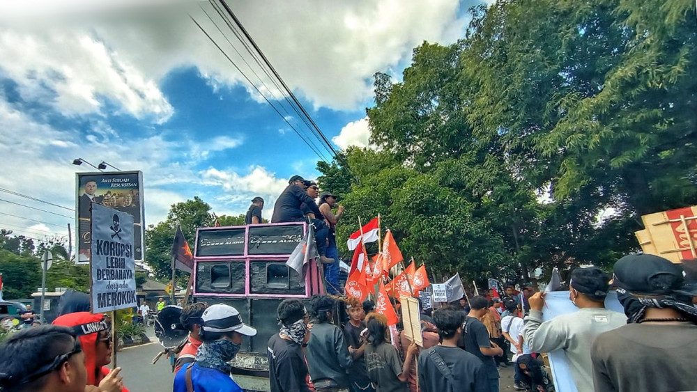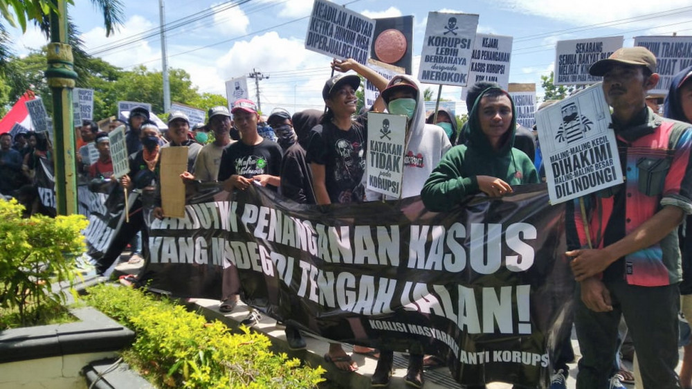 Blora - Ratusan warga dan aktivis anti-korupsi di Kabupaten Blora, pada Selasa (25/02/2020) siang mengelar aksi demo atau unjuk rasa di gedung DPRD dan Kejaksaan Negeri Blora.