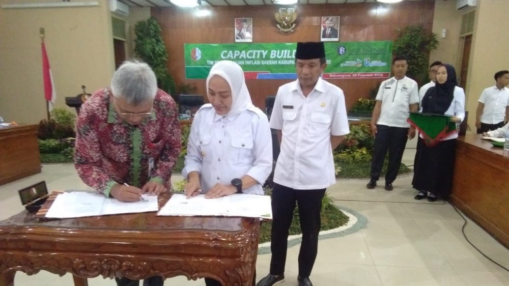 Bojonegoro - Pemerintah Kabupaten Bojonegoro melalui Badan Perencanaan Pembangunan Daerah (Bappeda) Kabupaten Bojonegoro pada Rabu (26/02/2020) menggelar Capacity Building Tim Pengendalian Inflasi Daerah (TPID) Kabupaten Bojonegoro tahun 2020, yang dirangkai dengan penanda-tanganan memorandum of understanding (MoU) antara Pemkab Bojonegoro dengan Bank Indonesia.
