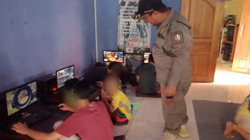 Bojonegoro - Aparat gabungan dari Satuan Polisi Pamong Praja (Satpol PP) Kabupaten Bojonegoro bersama anggota Polsek Padangan, pada Rabu (18/01/2020), laksanakan razia di wilayah Kecamatan Padangan, terhadap anak-anak atau pelajar yang sedang nongkrong di warnet dan warung kopi dan tidak belajar di rumah selama masa libur sekolah akibat wabah virus corona (Covid-19).