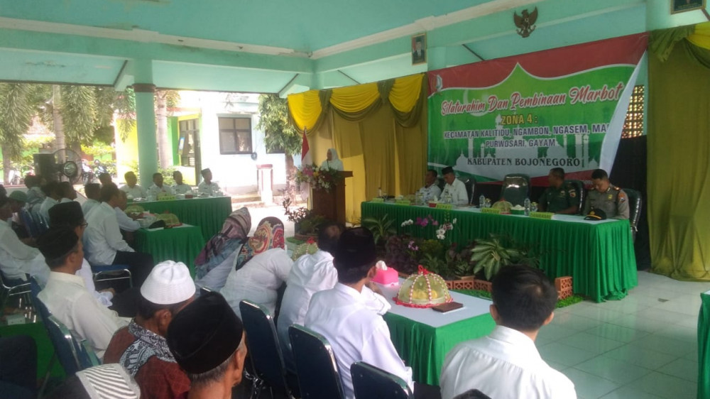 Bojonegoro - Bupati Bojonegoro, DR Hj Anna Muawanah, saat hadiri silaturahmi dan pembinaan bagi Takmir Masjid atau Marbot dan Ustadz serta Ustadzah dari 5 kecamatan yaitu, Kecamatan Kalitidu, Ngasem, Ngambon, Malo dan Kecamatan Gayam, di Pendapa Kecamatan Kalitidu, Rabu (18/03/2020), meminta kepada para muazin agar usai azan menyampaikan imbauan tindakan perventif terkait Virus Corona (Covid-19).