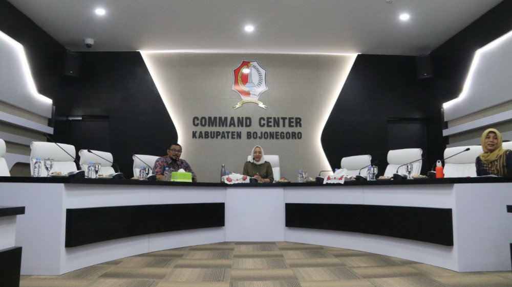 Bojonegoro - Melihat pesatnya penyebaran virus corona (Covid-19), Bupati Bjonegoro Dr Hj Anna Muawanah pada Kamis (19/03/2020) siang, di Command Center Gedung Pusat Informasi Publik (PIP) Kabupaten Bojonegoro, lakukan video conference, dengan 28 camat se kabupaten Bojonegoro, untuk memantau kondisi kesiapan tiap kecamatan dalam menghadapi penyebaran Virus Corona (covid-19).