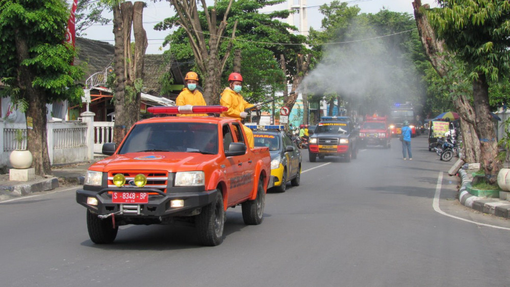 Dalam kegiatan tersebut, Polisi menerjunkan satu unit mobil watercanon milik Brimob Kompi 3 Batalyon C Pelopor Bojonegoro, sementara Dinas Pemadam Kebakaran (Damkar) Bojonegoro, menerjunkan satu unit mobil pemadam kebakaran, untuk melakukan penyemprotan cairan disinfektan di sejumlah jalan di Kota Bojonegoro.