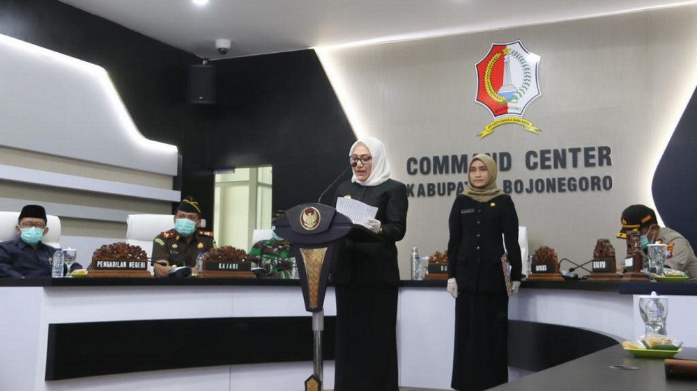 Kebijakan pelantikan dan pengambilan sumpah melalui video conference tersebut sebagai upaya pencegahan penyebaran Virus Corona (Covid-19) khususnya di Kabupaten Bojonegoro.