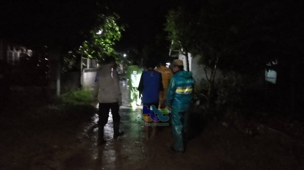 Aparat saat melakukan pemantauan kondisi banjir di Dusun Lor Kali Desa Gondang Kecamatan Gondang Bojonegoro Selasa (07/04/2020)