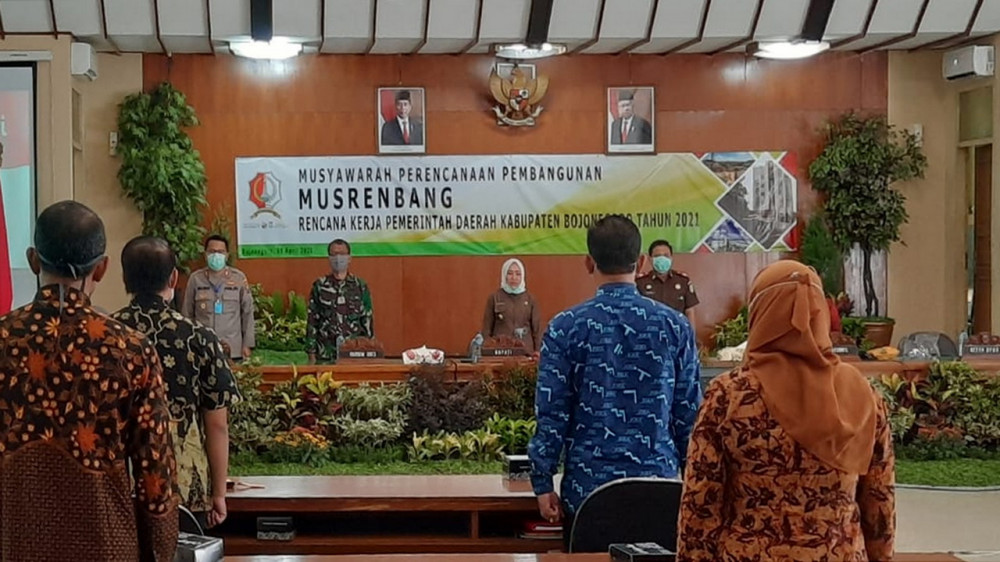 Musrenbang Rencana Kerja Pemerintah Daerah (RKPD) Kabupaten Bojonegoro tahun 2021, di aula Angling Dharma Pemkab Bojonegoro. Kamis (09/04/2020)