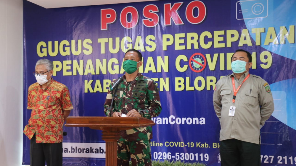 Dandim 0721 Blora Letkol Inf Ali Mahmudi SSos, selaku Wakil Ketua II GTPP Covid-19 Kabupaten Blora, didampingi Direktur RSUD dr R Soetijono Blora dan Kepala Pelaksana BPBD Blora, pada Kamis (09/04/2020), kembali menyampaikan update perkembangan terbaru kondisi persebaran virus Corona.
