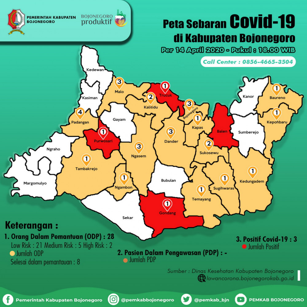 Infografis Peta Sebaran Virus Corona (Covid-19) di Kabupaten Bojonegoro hingga Selasa (14/04/2020)