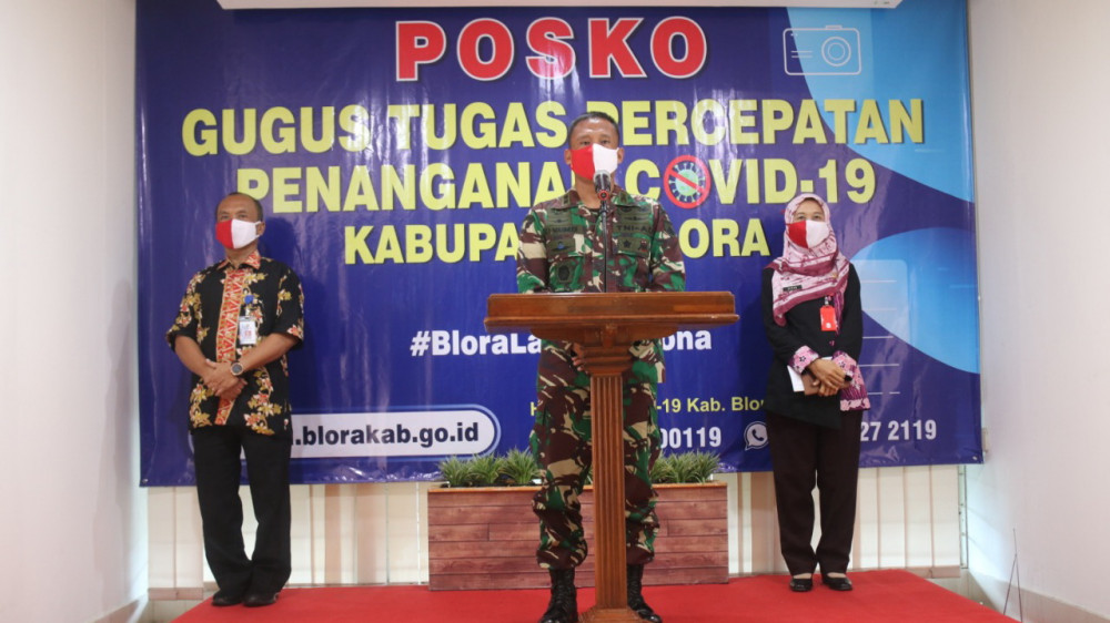 Dandim 0721/Blora Letkol Inf Ali Mahmudi SE, selaku Wakil Ketua II GTPP, didampingi Plt. Kepala Dinas Kesehatan bersana Sekretaris Dinas Pertanian dan Ketahanan Pangan Kabupate Blora, bertempat di media center Posko GTPP Covid-19 Kabupaten Blora, Kamis (06/04/2020) menyampaikan bahwa hingga hari ini Kabupaten Blora masih nihil kasus terkonfirmasi positif.