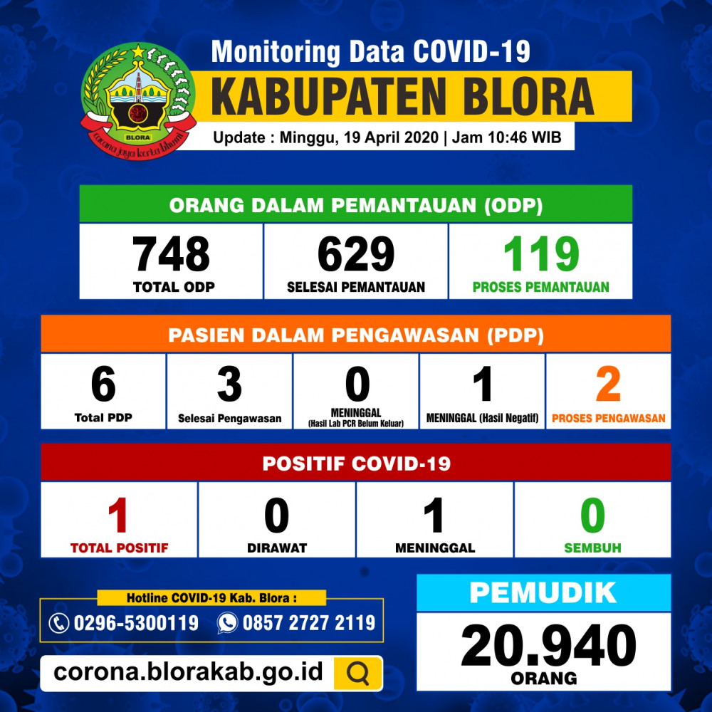 Infografis Perkembangan Virus Corona (Covid-19) di Kabupaten Blora hingga Minggu (19/04/2020)