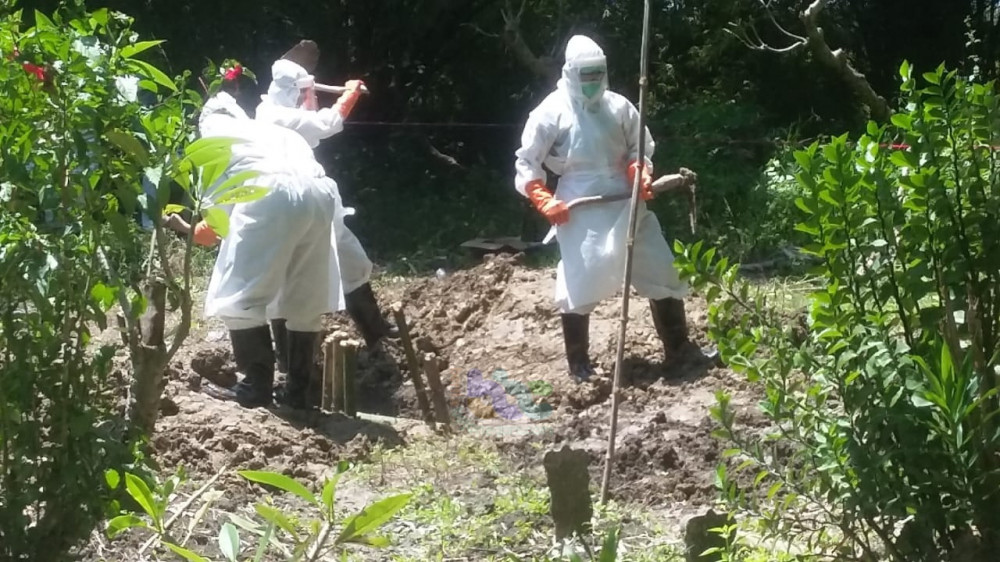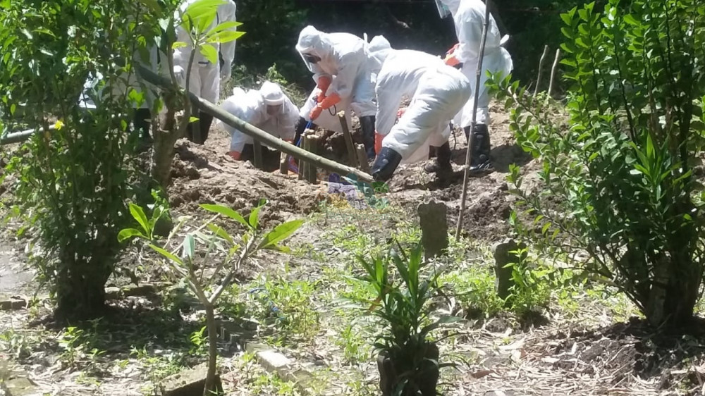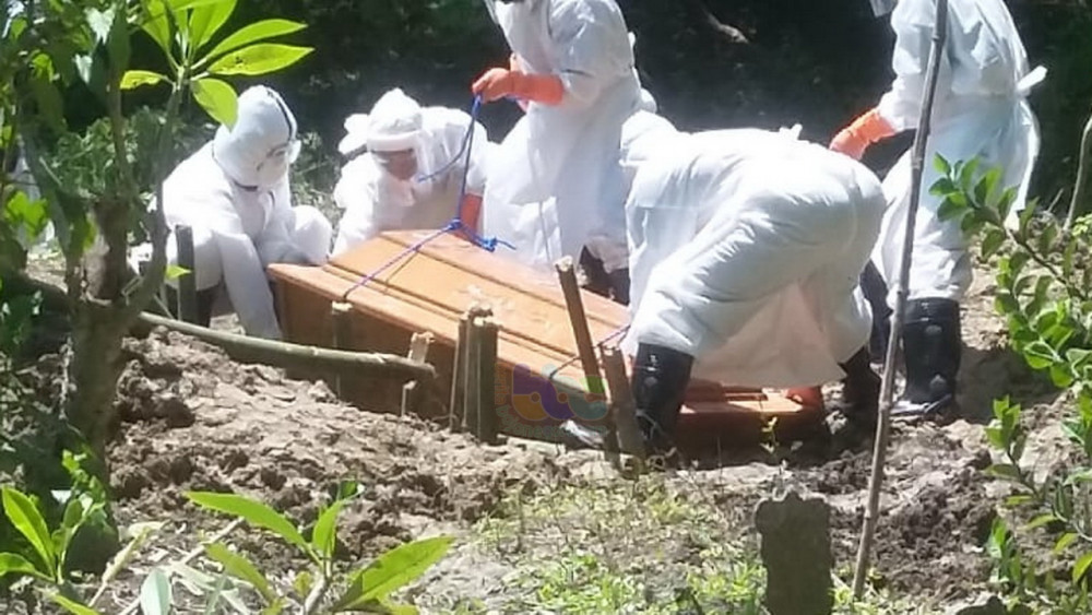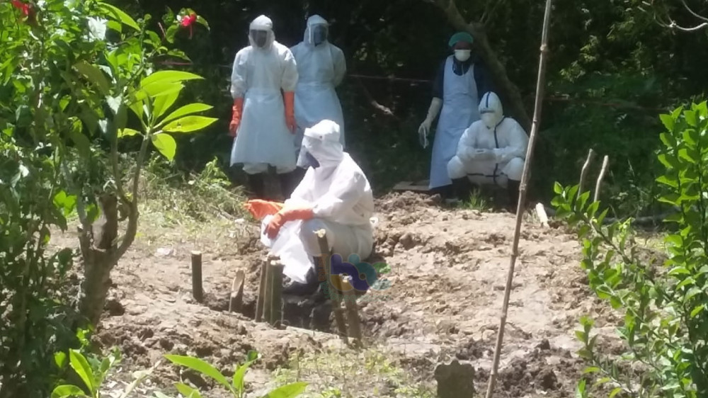 Meskipun orang tersebut belum dipastikan terinfeksi virus Corona (Covid-19), namun sebagai antisipasi atau pencegahan, prosesi pemakaman dilaksanakan dengan menggunakan protokoler kesehatan Covid-19.