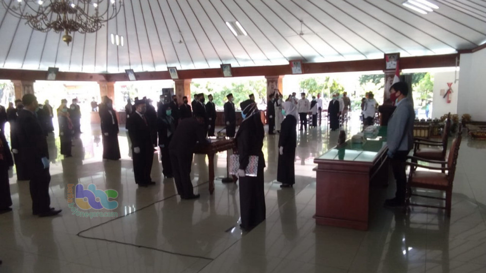Bojonegoro - Bupati Bojonegoro, Dr Hj Anna Muawanah, pada Rabu (29/04/2020) pagi, bertempat di Pendapa malowopati Pemkab Bojonegoro, melantik 84 pejabat di lingkungan Pemerintah Kabupaten (Pemkab) Bojonegoro, yang terdiri dari 26 Pejabat Administrator dan 58 Pejabat Pengawas.
