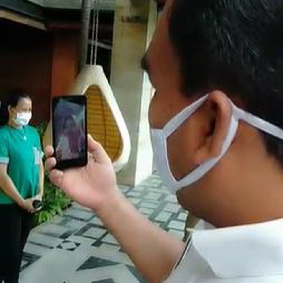"Kita sapa, kita semangati melalui video call lewat handphone. Karena kita dilarang bertatap muka langsung,” kata Wakil Bupati. Salah satu tenaga medis yang kita video call tadi adalah Mbak Mimin. Dia sudah sejak kemarin menjalani karantina atau isolasi diri disini. Alhamdulillah tadi lewat sambungan video call, dirinya mengaku senang dan tenang berada di hotel. Bisa istirahat tanpa khawatir bersinggungan dengan keluarga di rumah,” kata Wakil Bupati menambahkan.