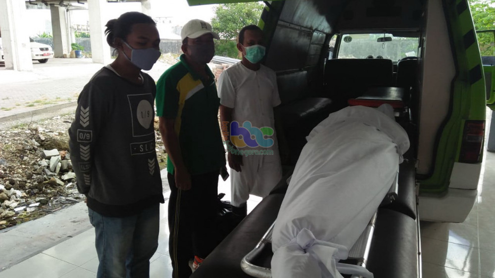 Jenazah Ahmad Fery Muzaky (27), warga Desa Talun Kecamatan Sumberejo Kabupaten Bojonegoro, saat hendak dibawa pulang dari RSUD Bojonegoro. Jumat (08/05/2020)
