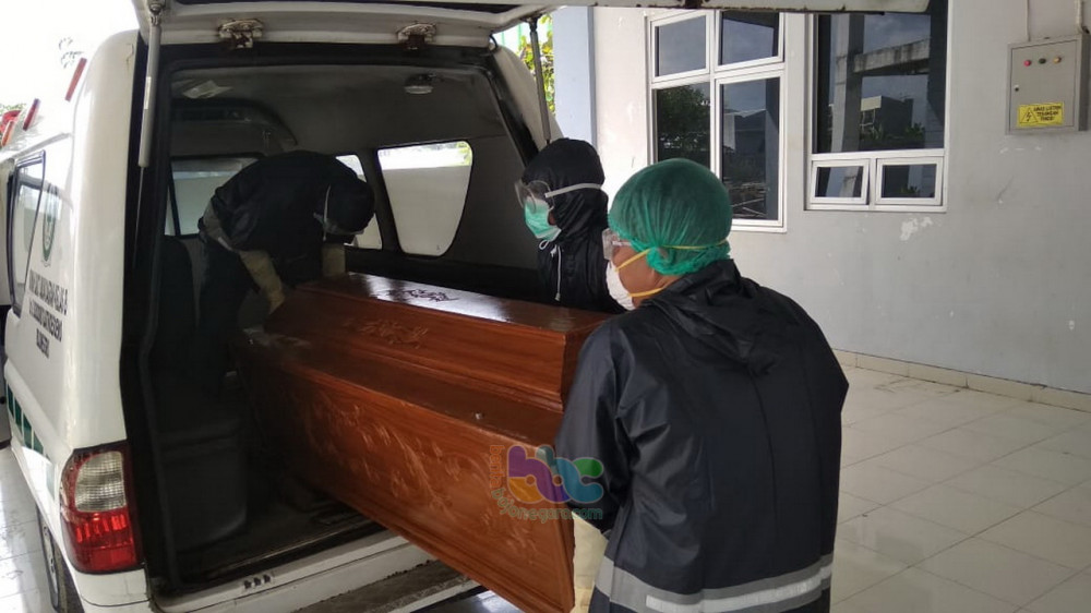 Bojonegoro - Jenazah seorang laki-laki warga Desa Wedi Kecamatan Kapas Kabupaten Bojonegoro, yang meninggal dunia di Rumah Sakit Umum Daerah (RSUD) dr R Sosodoro Djatikoesoemo Bojonegoro, pada Sabtu (09/05/2020) pukul 08.00 WIB pagi tadi, dimakamkan sesuai protokol kesehatan Covid-19.