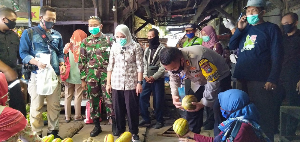 Kunjungan tersebut untuk memastikan bahwa aktivitas para pedangang dan pembeli di pasar tersebut telah sesuai dengan protokol Covid-19, sehingga keamanan warga yang beraktivitas di pasar tersebut terjamin keamanannya dari potensi penyebaran atau penularan virus Corona (Covid-19).