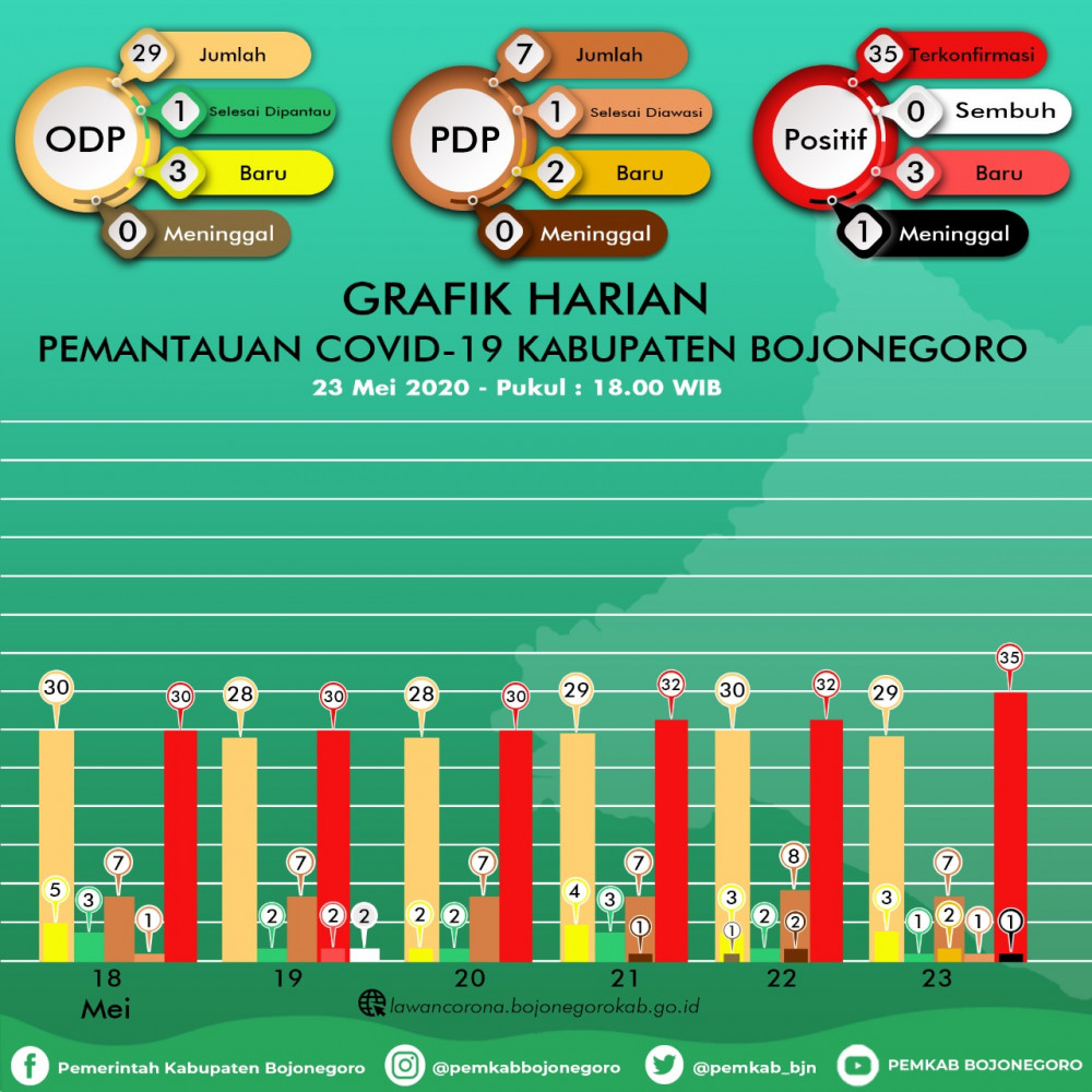 Update Corona Bojonegoro 23 Mei: OTG 364, ODP 29, PDP 7, Positif 42 Sembuh 2 Meninggal 6