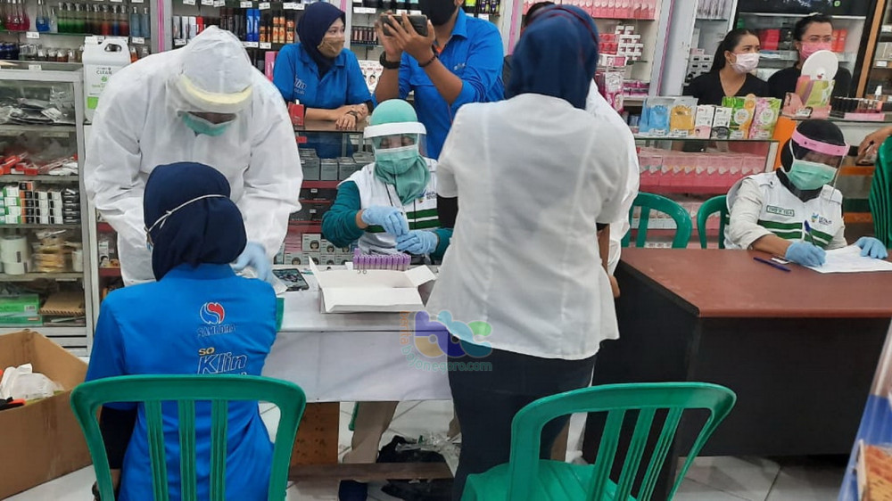 Dinas Kesehatan (Dinkes) Kabupaten Bojonegoro, saat menggelar rapid test terhadap karyawan dan karyawati di pasar swalayan yang ada di Jalan Imam Bonjol Bojonegoro. Rabu (27/05/2020)