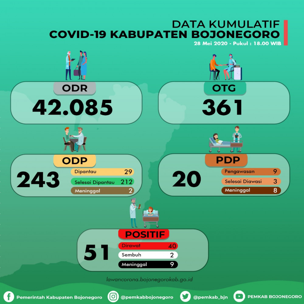 Tambah Lagi 1 Orang, Positif Corona di Bojonegoro Jadi 51, Dirawat 40, Meninggal 9, Sembuh 2