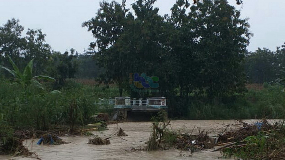 Bojonegoro - Hujan deras yang mengguyur wilayah Kecamatan Sekar pada Kamis (28/05/2020) siang hingga sore kemarin, mengakibatkan Kali Klampok yang berada di Dusun Kaliklampok Desa Bobol Kecamatan Sekar Kabupaten Bojonegoro meluap.