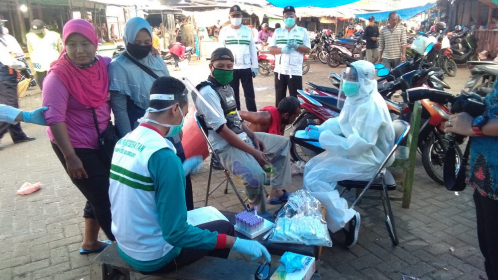 Bojonegoro - Sebagai upaya untuk memutus mata rantai penularan virus Corona (Covid-19) khususnya dari para pedagang pasar tradisional, Pemerintah Kabupaten (Pemkab) Bojonegoro melalui Dinas Kesehatan (Dinkes) Kabupaten Bojonegoro, pada Sabtu (30/05/2020) pagi, kembali melakukan pemeriksaan Rapid Test terhadap para pedagang di 3 pasar tradisional yang ada di Kabupaten Bojonegoro.