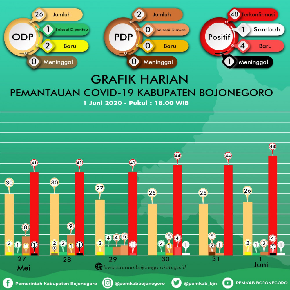 Infografis Grafik Pemantauan Virus Corona (Covid-19) di Kabupaten Bojonegoro hingga Senin (01/06/2020)