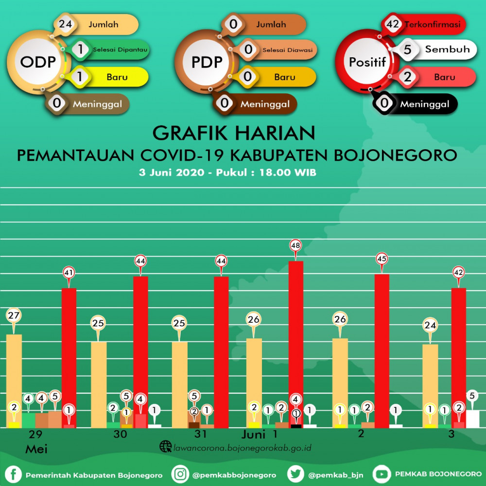 Update Corona Bojonegoro 3 Juni: ODP 24, PDP Nihil, Positif 62 Sembuh 10 Meninggal 10