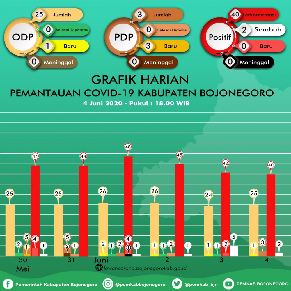 Update Corona Bojonegoro 4 Juni: ODP 25, PDP 3, Positif 62 Sembuh 12 Meninggal 10