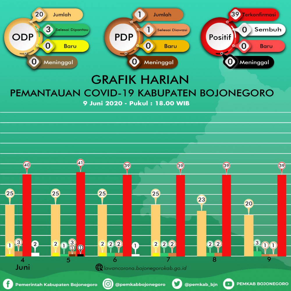 Update Corona Bojonegoro 9 Juni: ODP 20, PDP 1 Meninggal 10, Positif 63 Meninggal 11 Sembuh 13