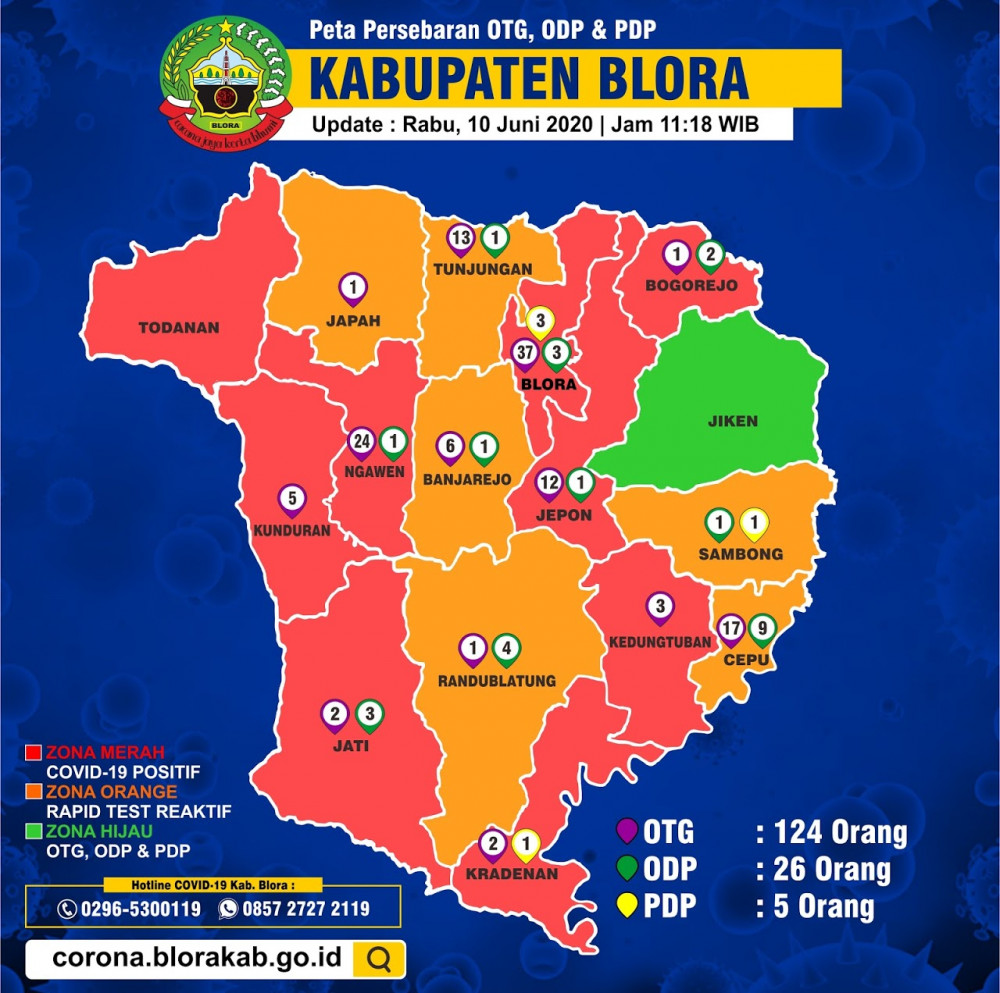 Infografis peta persebaran OTG, ODP dan PDP di Kabupaten Blora hingga Rabu (10/06/2020)