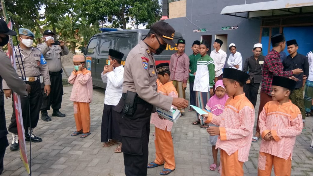 Bojonegoro - Dalam rangka memperingati Hari Bhayangkara ke-74, jajaran Polres Bojonegoro pada Selasa (23/06/2020), sosialisasikan Gerakan Jatim Bermasker dan Jatim Sehat, dengan melakukan kegiatan bagi-bagi masker dan pamflet di kawasan pasar tradisional, pondok pesantren dan di tempat fasilitas umum lainnya.