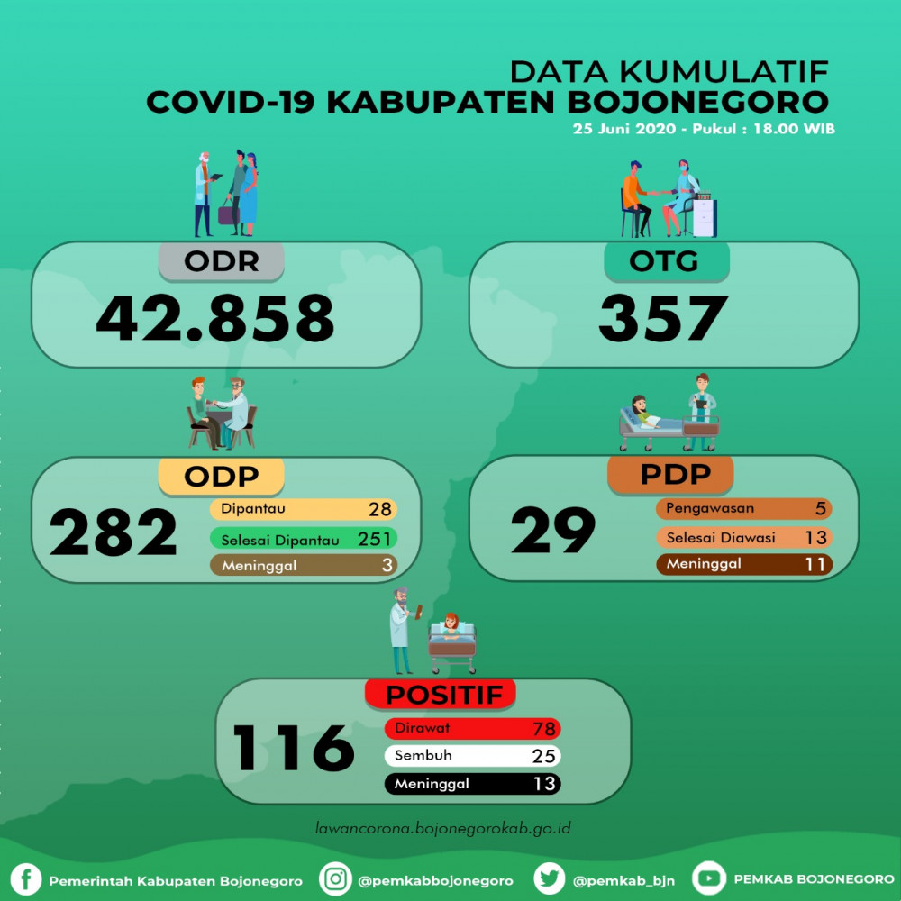 Infografis Grafik Kumulatif Pemantauan Virus Corona (Covid-19) di Kabupaten Bojonegoro hingga Kamis (25/06/2020)