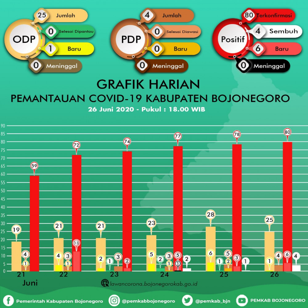 Update Corona Bojonegoro 26 Juni: ODP 25, PDP 4, Positif 122 Meninggal 13 Sembuh 29