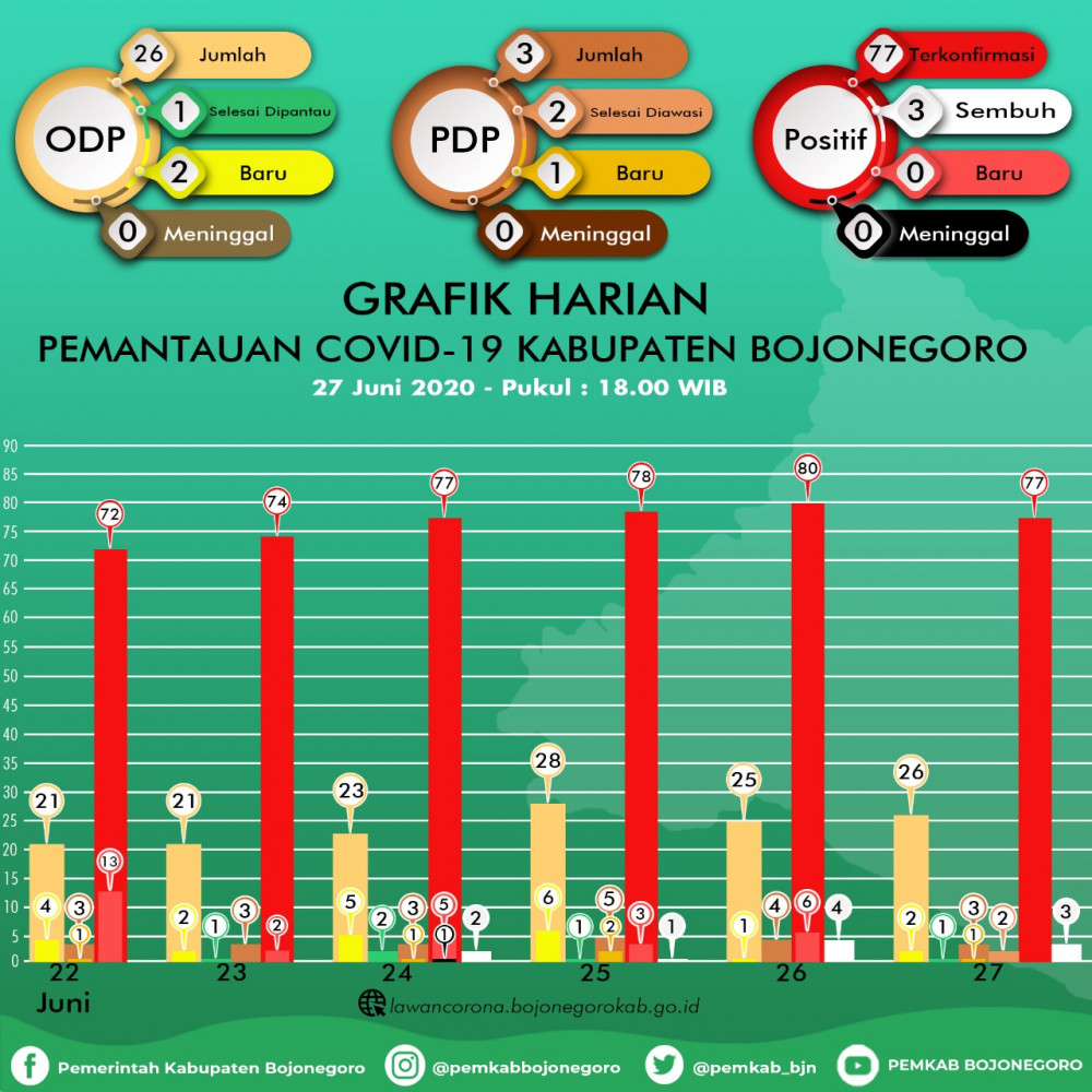Infografis Grafik HARIAN Pemantauan Virus Corona (Covid-19) di Kabupaten Bojonegoro hingga Sabtu (27/06/2020)