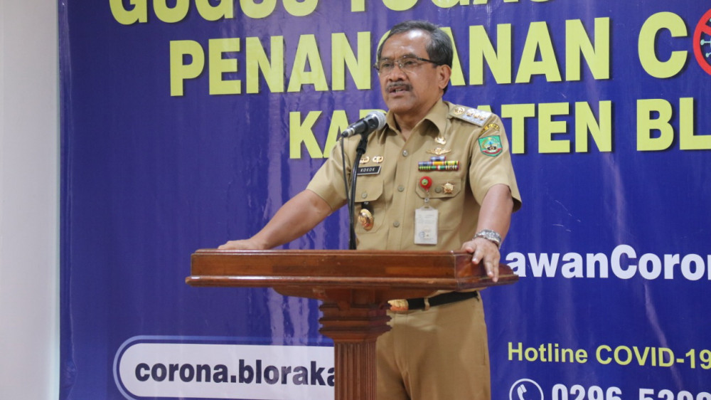 Bupati Blora, Djoko Nugroho, saat sampaikan update perkembangan dan persebaran virus Corona di Kabupaten Blora. Senin (29/06/2020)