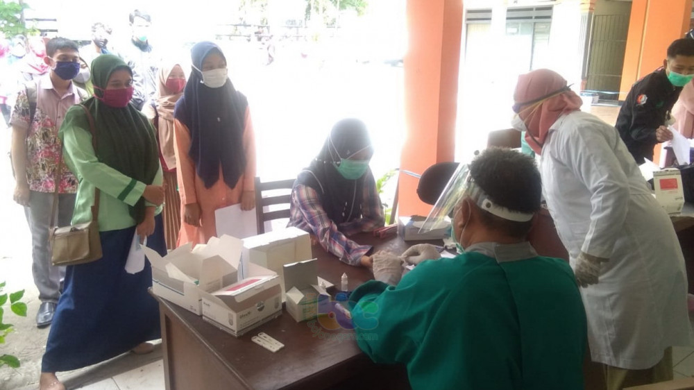 Bojonegoro - Ratusan calon mahasiswa atau para calon peserta Ujian Tulis Berbasis Komputer (UTBK) dalam Seleksi Bersama Masuk Perguruan Tinggi Negeri (SBMPTN), tahun 2020 di Kabupaten Bojonegoro, ikuti rapid test gratis yang dberikan oleh Pemerintah Kabupaten (Pemkab) Bojonegoro, melalu Unit Pelayana Teknis (UPT) Laboratorium Kesehatan Daerah (Labkesda) Dinas Kesehatan (Dinkes) Kabupaten Bojonegoro.