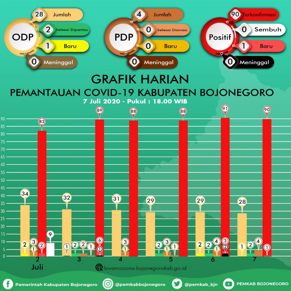 Infografis Grafik HARIAN Pemantauan Virus Corona (Covid-19) di Kabupaten Bojonegoro hingga Selasa (07/07/2020)