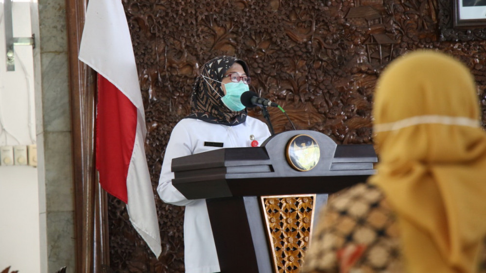 Kepala Dinkes Kabupaten Bojonegoro, dr Ani Pujiningrum MMKes, saat hadiri Pertemuan Pembekalan dan Pembinaan Kader Pendamping Ibu Hamil Risiko Tinggi di Pendapa Malowopati Pemkab Bojonegoro, Rabu (08/07/2020)
