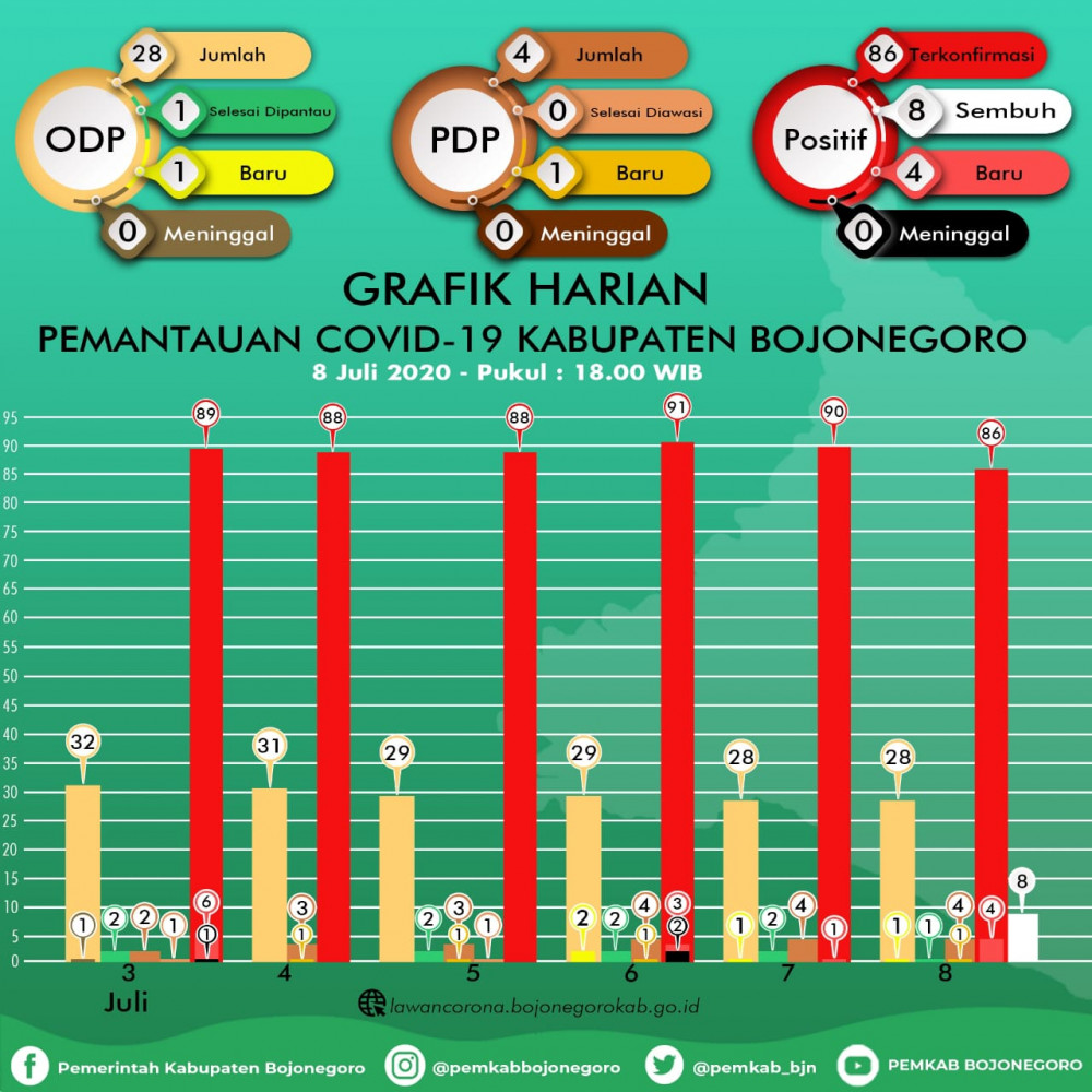 Infografis Grafik HARIAN Pemantauan Virus Corona (Covid-19) di Kabupaten Bojonegoro hingga Rabu (08/07/2020)