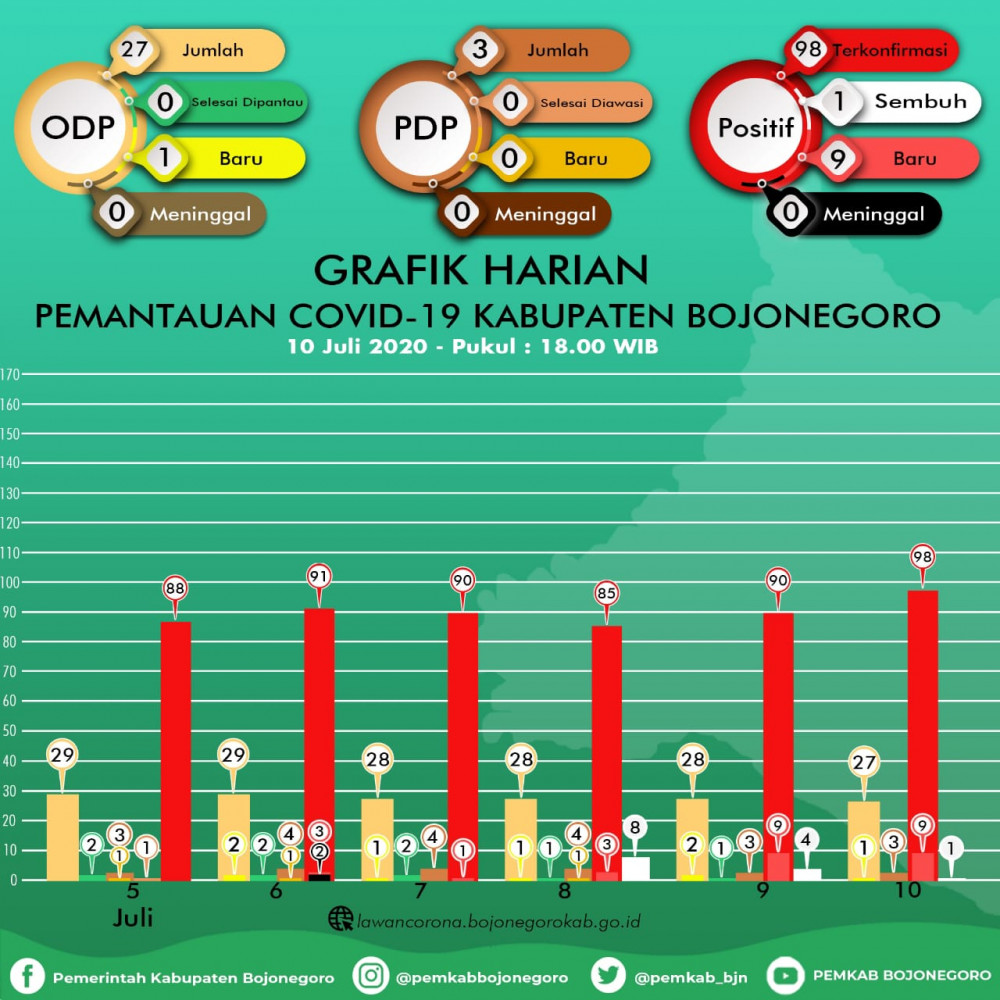 Update Corona Bojonegoro 10 Juli: ODP 27, PDP 3, Total Positif 173, Sembuh 58, Meninggal 17