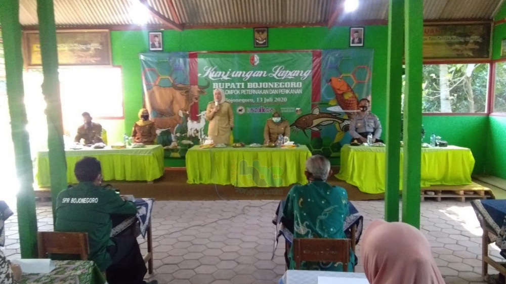 Bojonegoro - Bupati Bojonegoro, Dr Hj Anna Muawanah, didampingi Pejabat (Pj) Kepala Dinas Peternakan dan Perikanan (Disnakan) Kabupaten Bojonegoro, drh Catur Rahayu K MSi, pada Senin (13/07/2020) kembali lakukan kunjungan lapangan sekaligus pembinaan kelompok ternak dan perikanan di Desa Jono Kecamatan Temayang.