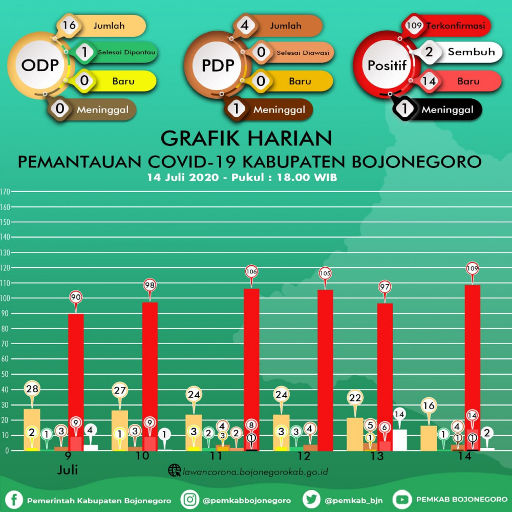 Infografis Grafik HARIAN Pemantauan Virus Corona (Covid-19) di Kabupaten Bojonegoro hingga Selasa (14/07/2020)