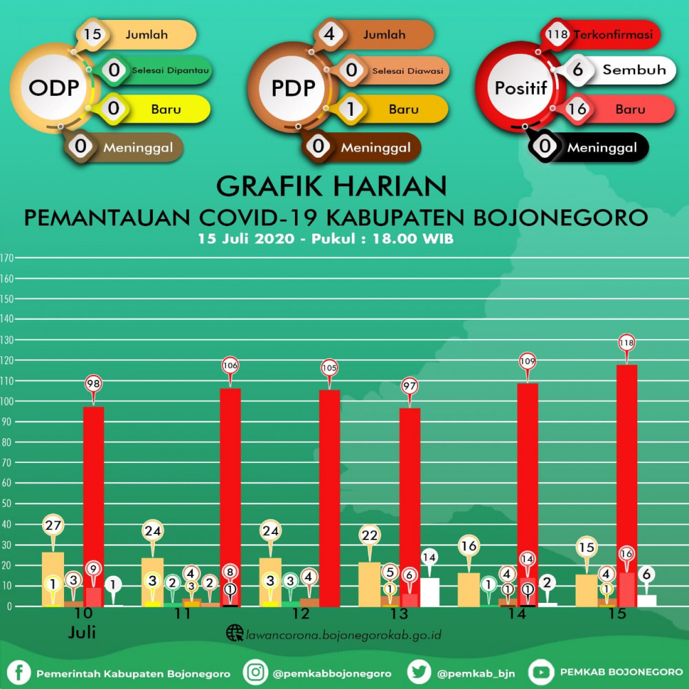Infografis Grafik HARIAN Pemantauan Virus Corona (Covid-19) di Kabupaten Bojonegoro hingga Rabu (15/07/2020)