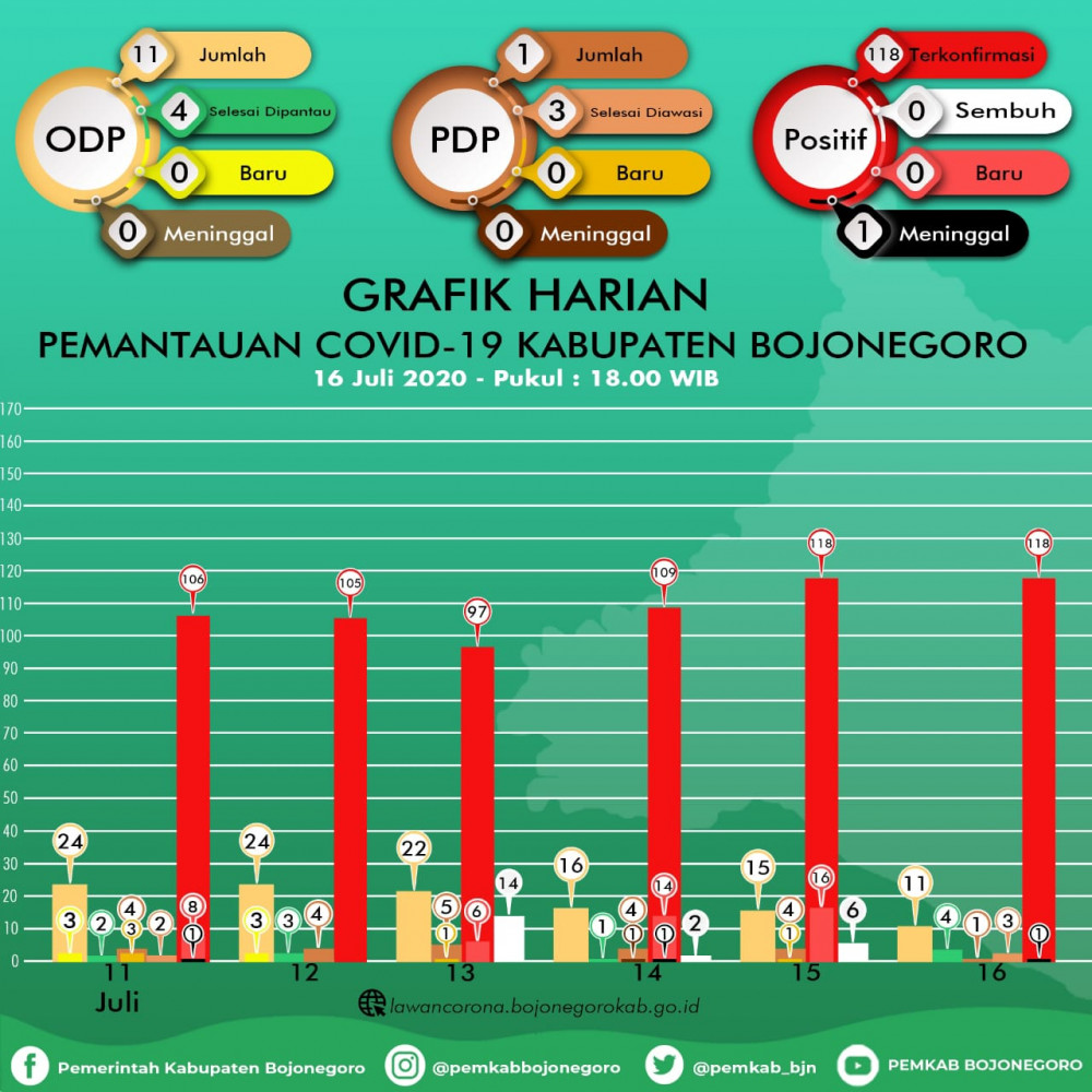 Infografis Grafik HARIAN Pemantauan Virus Corona (Covid-19) di Kabupaten Bojonegoro hingga Kamis (16/07/2020)