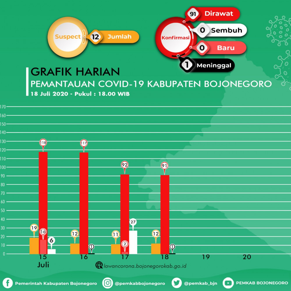 Infografis Grafik HARIAN Pemantauan Virus Corona (Covid-19) di Kabupaten Bojonegoro hingga Sabtu (18/07/2020)