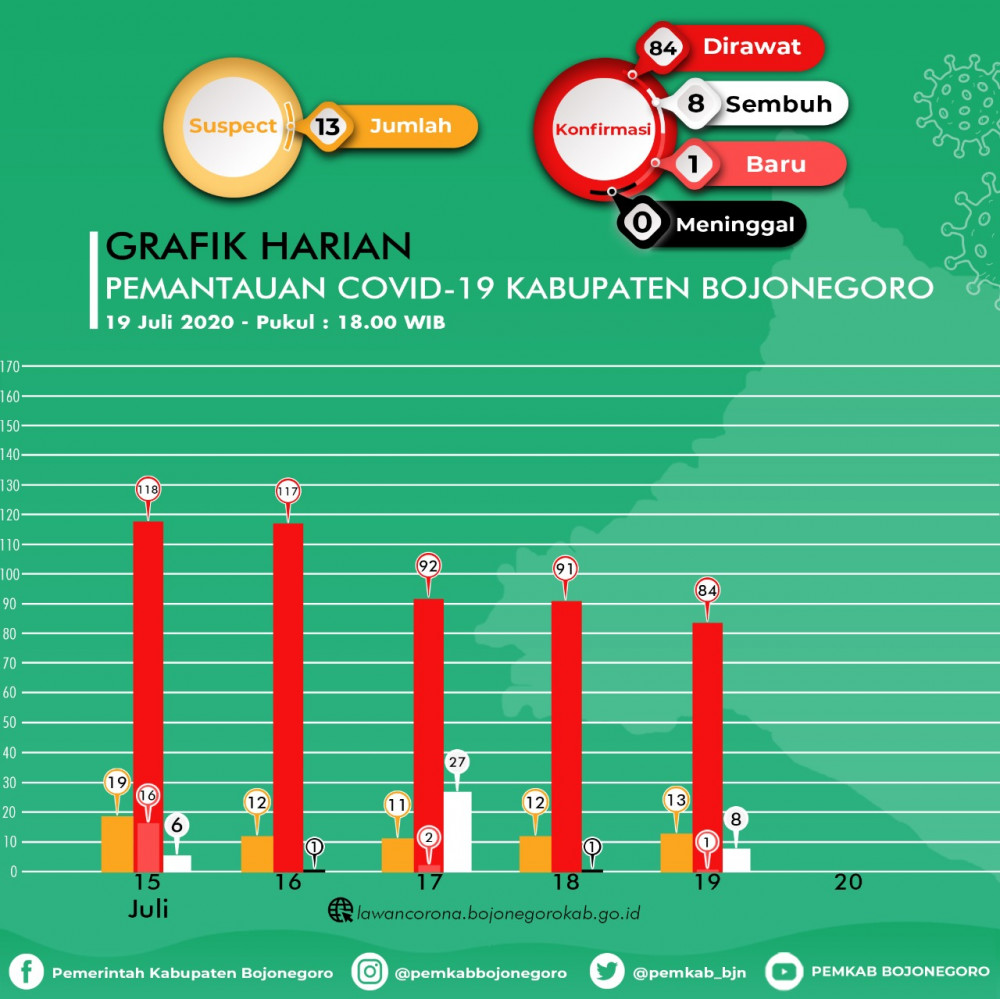 Infografis Grafik HARIAN Pemantauan Virus Corona (Covid-19) di Kabupaten Bojonegoro hingga Minggu (19/07/2020)
