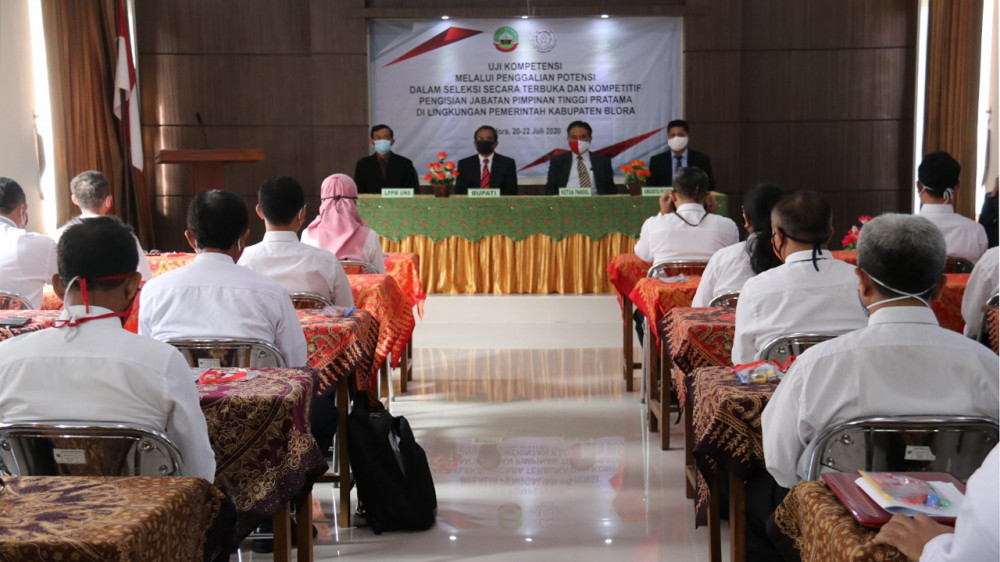 Blora - Pemerintah Kabupaten (Pemkab) Blora saat ini sedang melaksanakan kegiatan uji kompetensi kekosongan 7 kursi Jabatan Pimpinan Tinggi Pratama (JPTP) di lingkup Pemkab Blora, yang dilaksanakan selama dua hari mulai Selasa (21/07/2020) hingga Rabu (22/07/2020), sementara pembinaan pra uji kompetensi JPTP tersebut dilaksanakan pada hari Senin (20/07/2020) lalu.