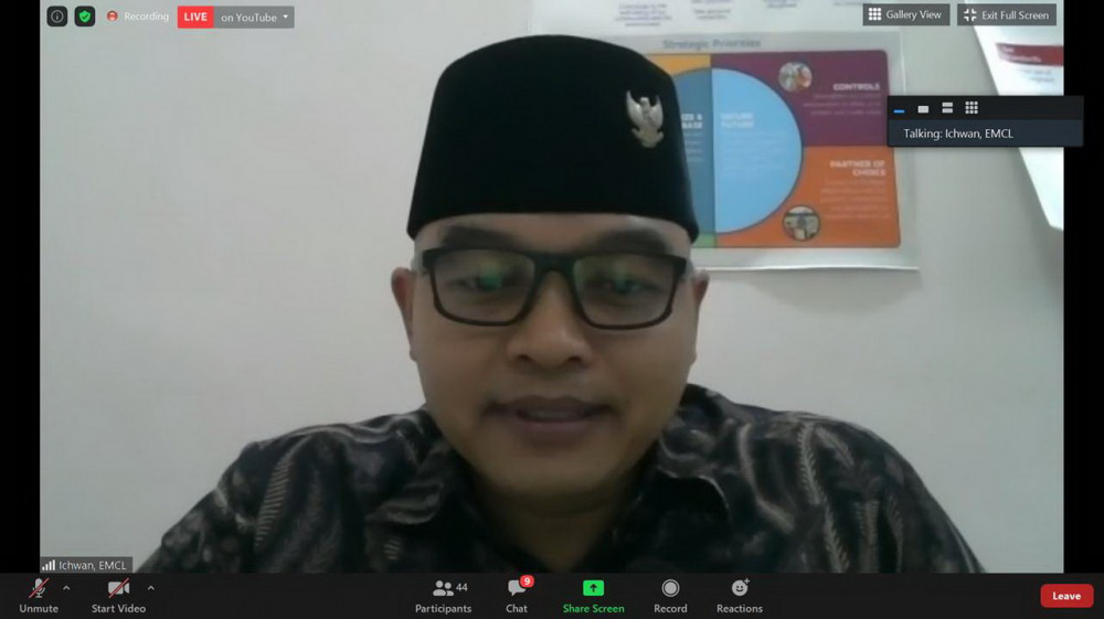 External Affairs Manager EMCL, Ichwan Arifin saat membuka acara webinar bertajuk Merawat UMKM dan Koperasi di Masa Pandemi. Rabu (22/07/2020)