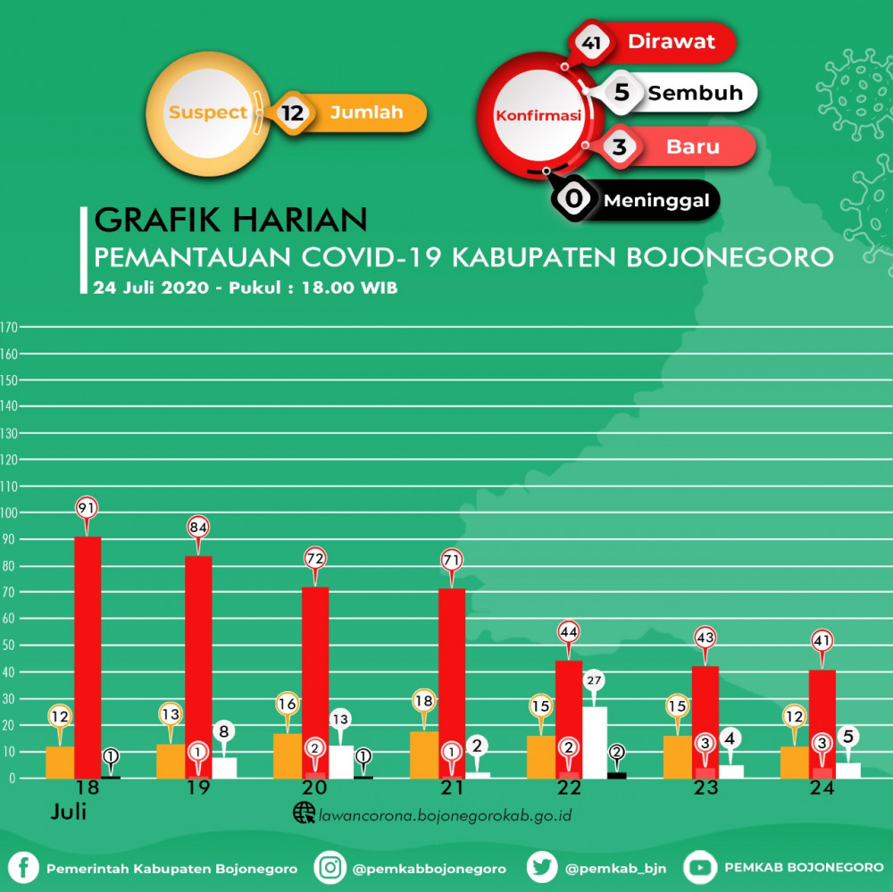 Update Corona Bojonegoro 24 Juli: Suspect 12, Confirm 231, Dirawat 41, Sembuh 166, Meninggal 24