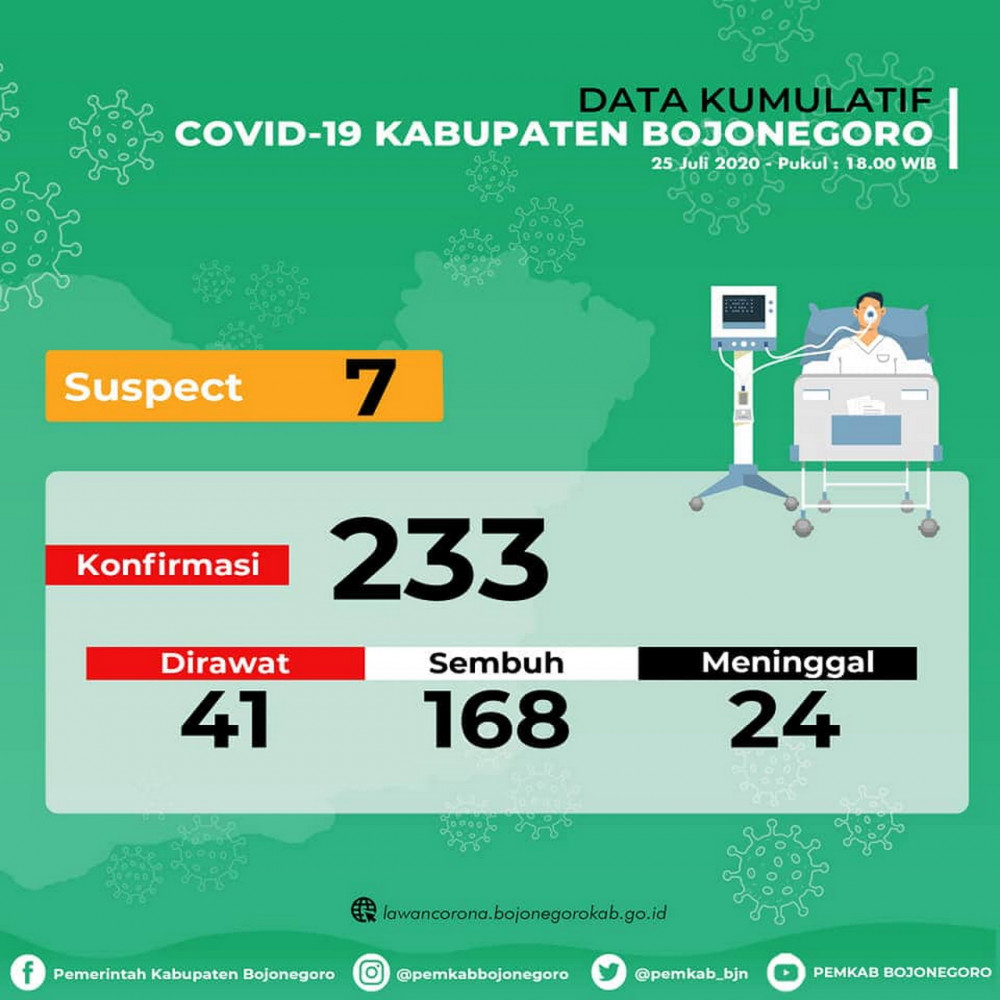 Infografis Data Kumulatif Pemantauan Virus Corona (Covid-19) di Kabupaten Bojonegoro hingga Sabtu (25/07/2020)