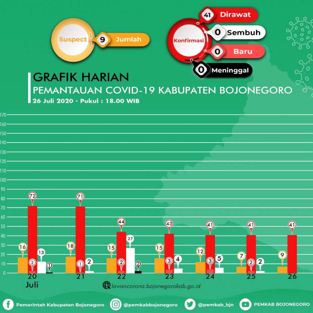Update Corona Bojonegoro 26 Juli: Suspect 9, Confirm Tetap 233, Dirawat 41, Sembuh 168, Meninggal 24